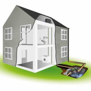 The indirect supply system is designed to support WCs, washing machines, irrigation, and outside cleaning purposes. Rainwater is collected from the roof of the property and fed into the underground tank via the downpipes. On entry to the tank, the water passes through a filter to prevent any debris from going into the tank. With this system, there is a pressure-sensitive pump located in the underground tank.