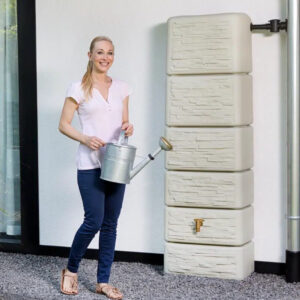 This contemporary 500L Slim Rainwater Wall Tank in Sand Beige is perfect for collecting a large amount of water in a small space and comes with a tap, an 3/4″ inner thread to fit in and accessories.