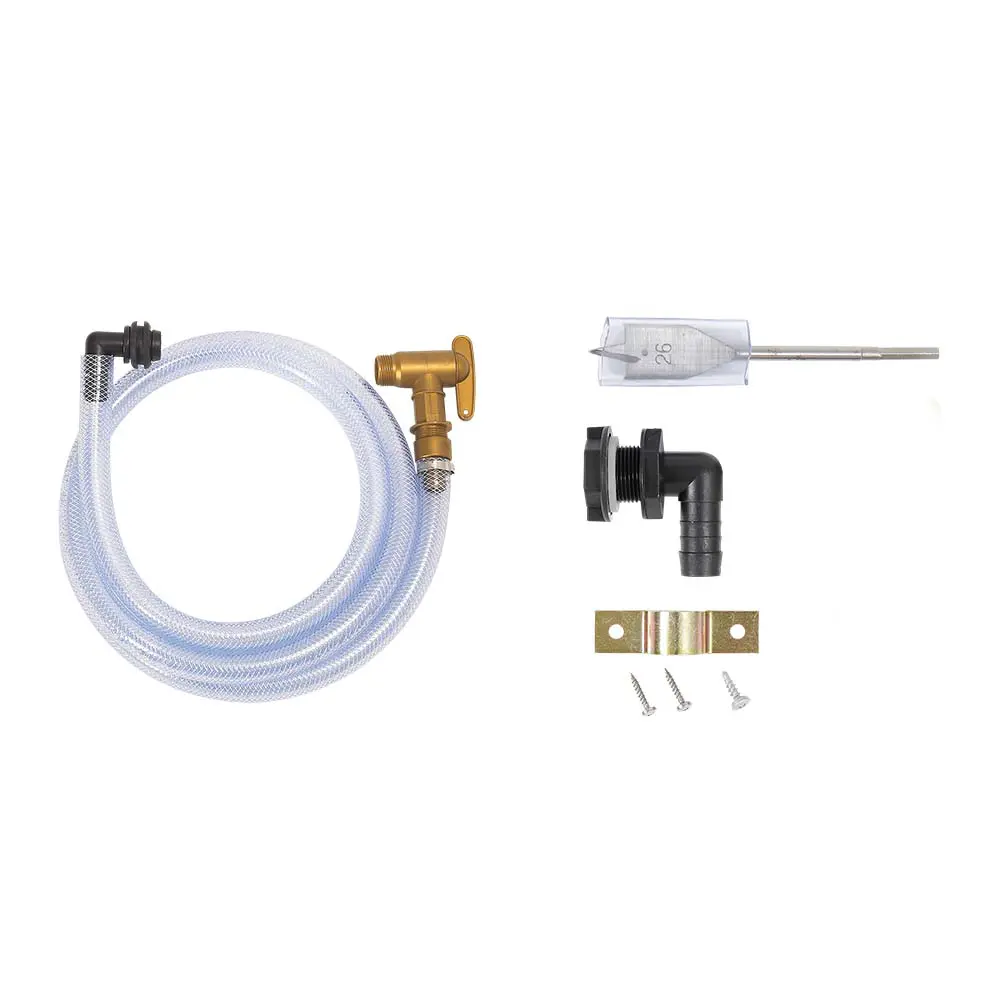 Kit for complete water extraction and water level display for water butts. This kit consists of 2.15m flexible transparent hose, tap and various connection options.